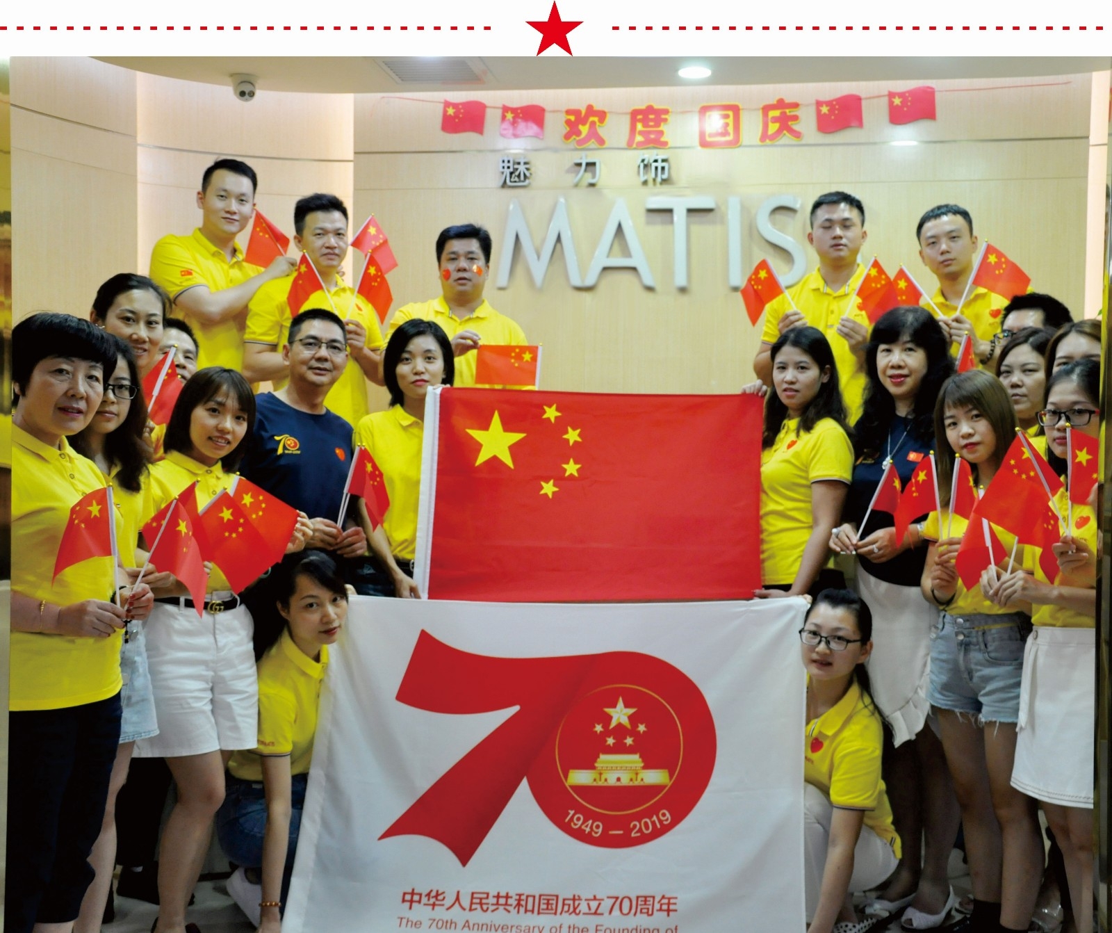 Over the past 70 years, our motherland has grown strong from rising up to becoming rich, and has created one miracle after another. This is the pride and glory of all the Chinese people. Passion flying, convey the best wishes of the heart; Full of enthusiasm, bless the motherland flourishing. Home is the smallest country, country is ten million! Happy birthday, my country! Wish the motherland a better tomorrow! It shows the spirit of charm and vitality, inspiring the patriotic enthusiasm and pride of all employees. The charm jeweler sings for the prosperity of the motherland.
